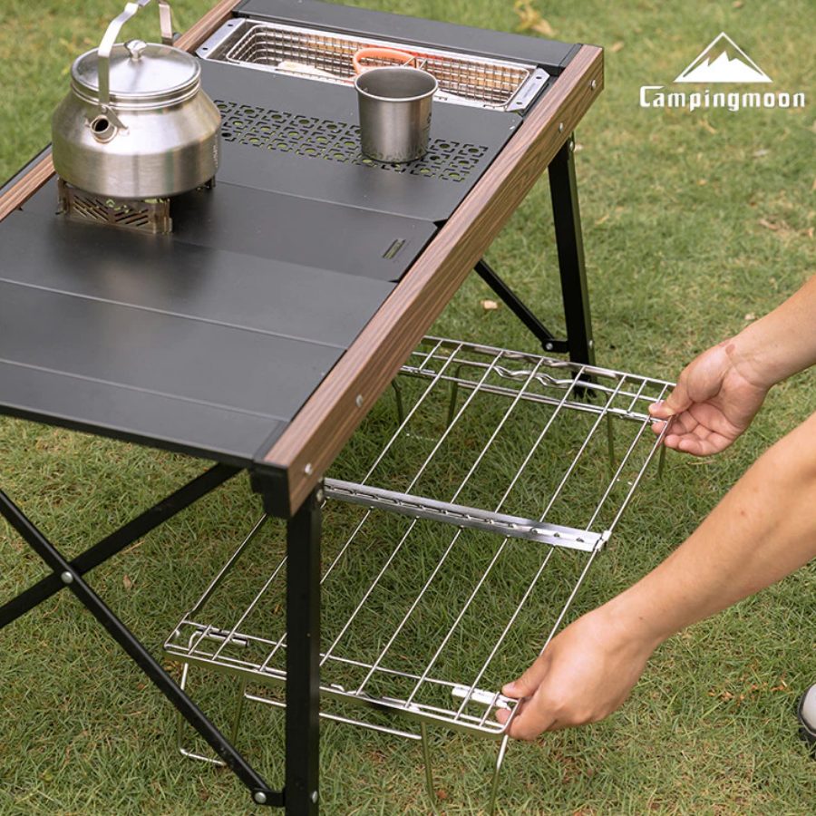 Một ưu điểm lớn khác của Campingmoon FD-13 / FD-22 là tính linh hoạt khi kết hợp. Kệ có thể sử dụng độc lập hoặc kết hợp cùng bàn camping, bếp gas dã ngoại và các phụ kiện khác để tạo thành một khu bếp ngoài trời hoàn chỉnh. Đây là giải pháp lý tưởng cho những ai yêu thích setup camping gọn gàng, khoa học nhưng vẫn mang tính thẩm mỹ cao.