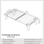Điểm nổi bật của giá kệ cắm trại Campingmoon nằm ở cơ chế kéo – gấp linh hoạt, giúp người dùng dễ dàng điều chỉnh chiều dài và chiều cao tùy theo nhu cầu. Với hai phiên bản FD-13 (chân thấp) và FD-22 (chân cao), sản phẩm đáp ứng đa dạng mục đích sử dụng: từ đặt bếp gas, nồi chảo, bình nước cho đến làm kệ phụ trợ khi nấu ăn hoặc bày biện đồ dùng ngoài trời. Kích thước sử dụng rộng rãi giúp tối ưu không gian, trong khi kích thước gấp gọn lại cực kỳ tiết kiệm diện tích hành lý.