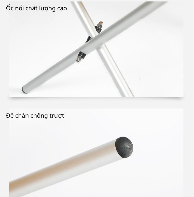 Với thiết kế thông minh, phần khung bàn được liên kết đồng bộ, khi mở ra sẽ tự động cố định chắc chắn. Bạn chỉ cần kéo nhẹ là toàn bộ hệ thống chân bàn và mặt bàn sẽ bung ra hoàn chỉnh. Khi không sử dụng, bàn cũng có thể gập lại nhanh chóng trong vài giây, giúp tiết kiệm tối đa thời gian và công sức. Đặc biệt, sau khi gập, bàn có dạng mỏng gọn, dễ dàng mang theo trong cốp xe hoặc cất giữ trong không gian nhỏ.