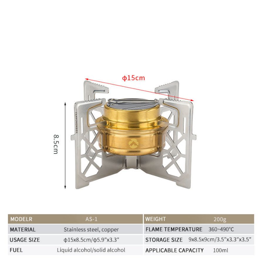 Bếp cồn dã ngoại tương thích với cả cồn lỏng và cồn khô, là những loại nhiên liệu dễ tìm, dễ bảo quản và an toàn khi mang theo. Thân bếp có dung tích khoảng 100ml, cho thời gian đốt đủ dài để đun nước, pha cà phê, nấu mì hoặc hâm nóng thức ăn trong các bữa ăn dã ngoại. Nhiệt độ ngọn lửa đạt khoảng 360–490°C, đảm bảo hiệu suất đun nấu ổn định và tiết kiệm nhiên liệu.
