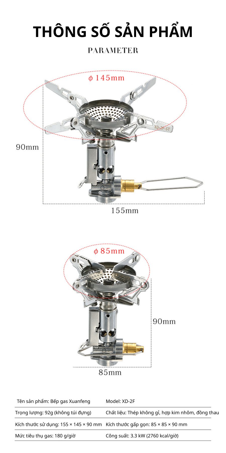 | Mức tiêu thụ gas | 180g/giờ |