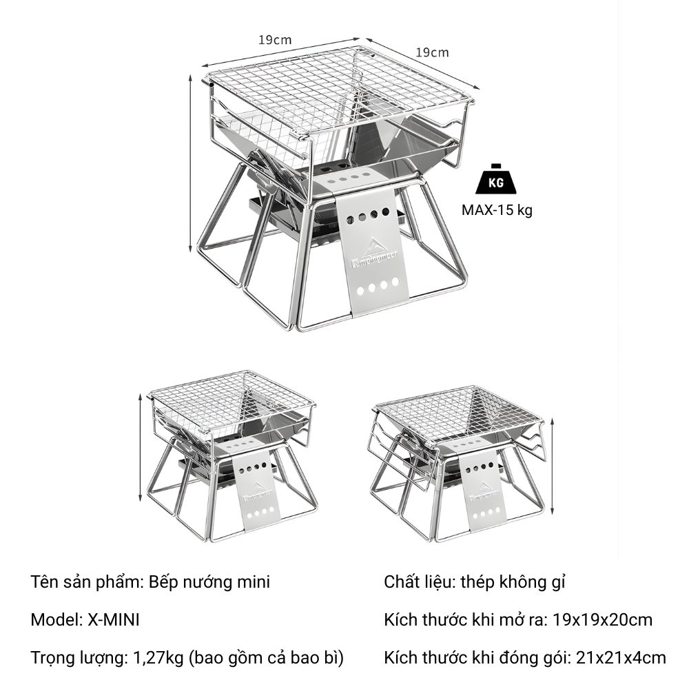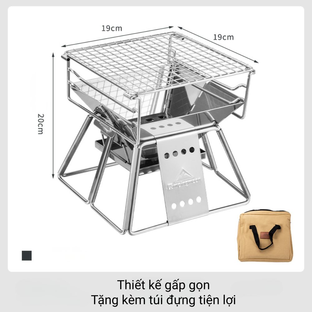 Campingmoon X-Mini là mẫu bếp nướng mini siêu gọn dành cho người thích BBQ solo, picnic nhẹ, cắm trại ngắn ngày hoặc nướng nhanh tại ban công. Thiết kế gấp gọn thông minh, chất liệu inox bền chắc, mang theo cực tiện mà vẫn đảm bảo hiệu suất nướng ổn định.