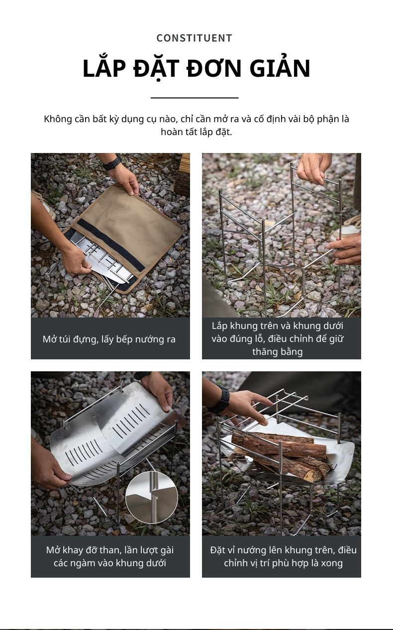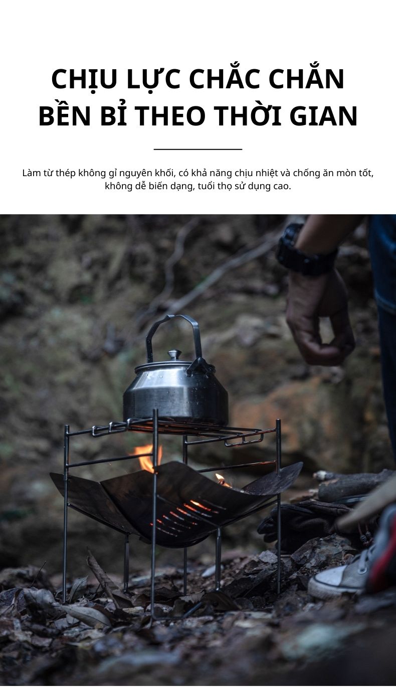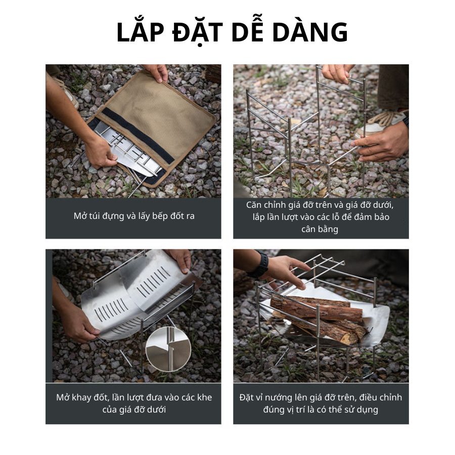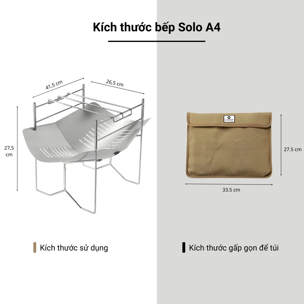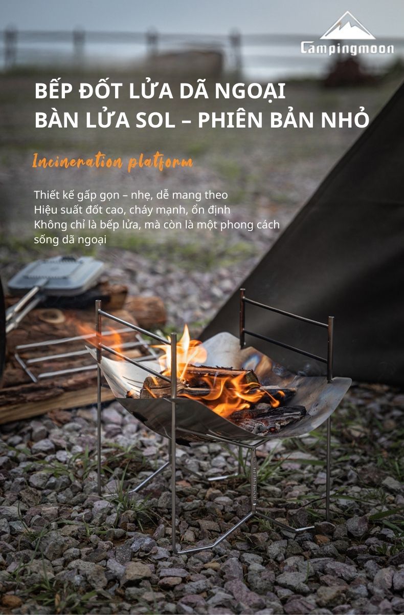 Bếp củi gấp gọn Campingmoon Solo-A4 | Bếp nướng thép không gỉ, tiện lợi cho cắm trại kèm túi gấp gọn