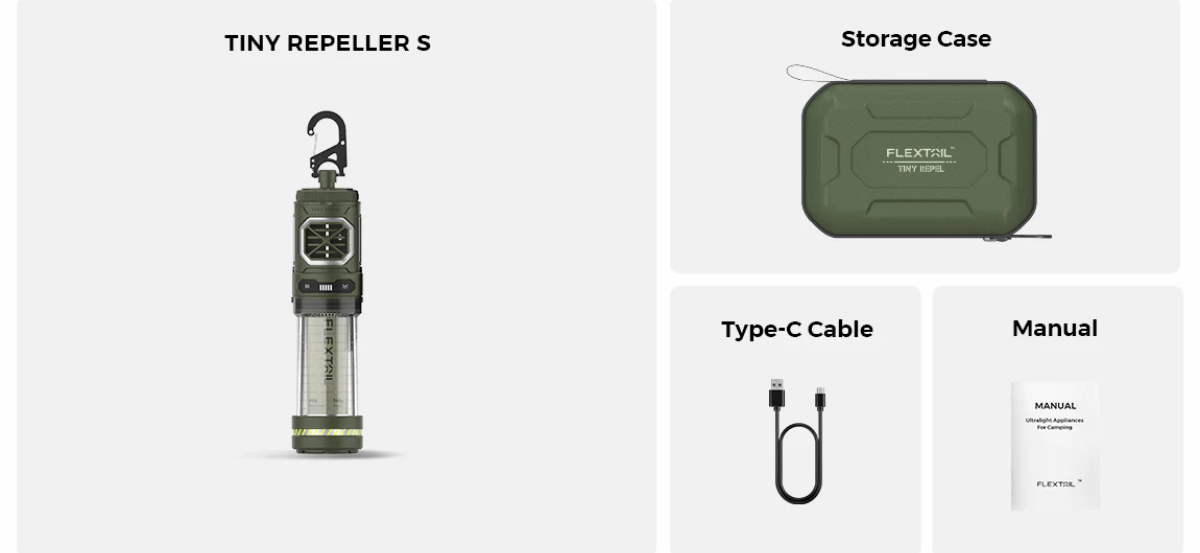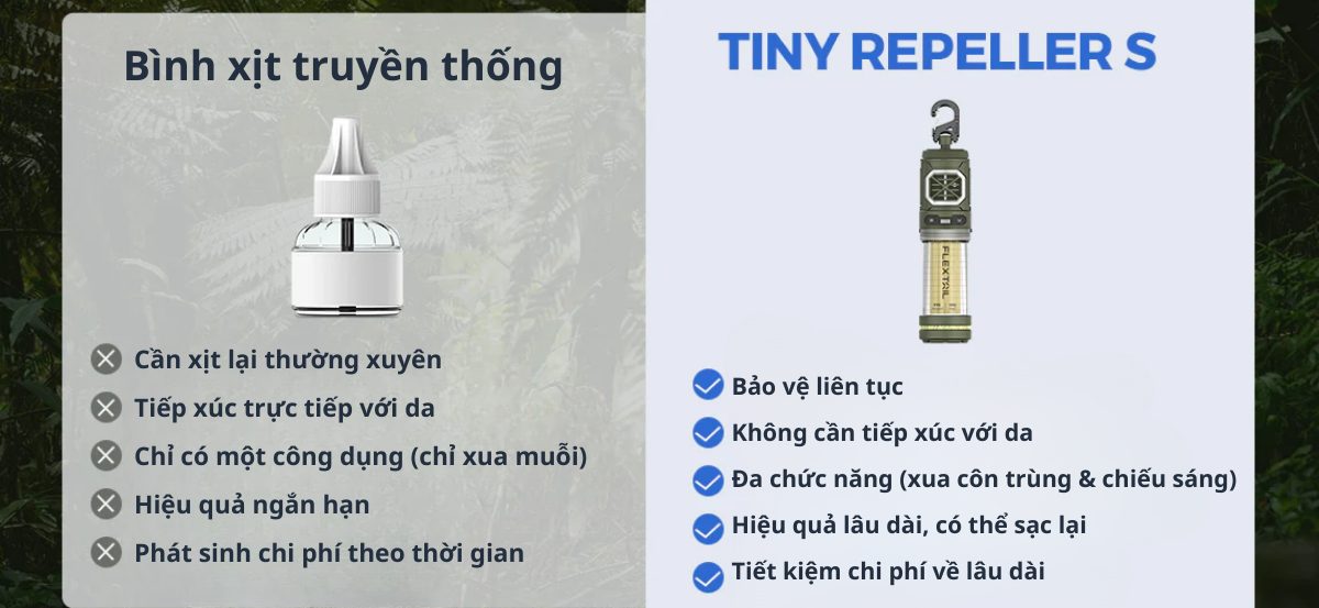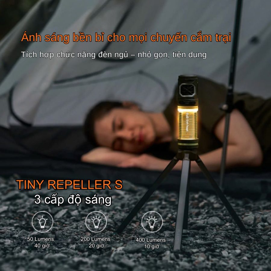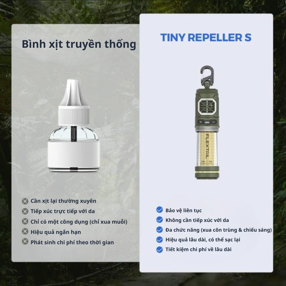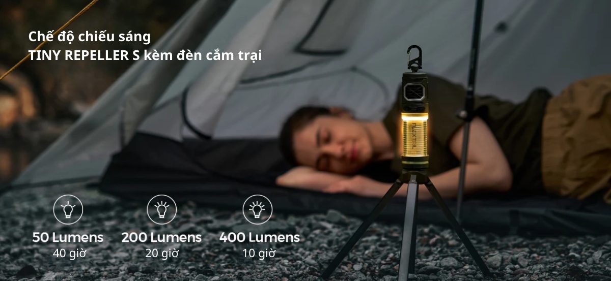 TINY REPELLER S kết hợp xua muỗi điện tử và đèn chiếu sáng, mang đến giải pháp đa năng, tiện lợi. Sản phẩm lý tưởng cho cắm trại, leo núi, dã ngoại và tình huống khẩn cấp tại nhà, đảm bảo trải nghiệm tối ưu trong nhiều môi trường khác nhau.