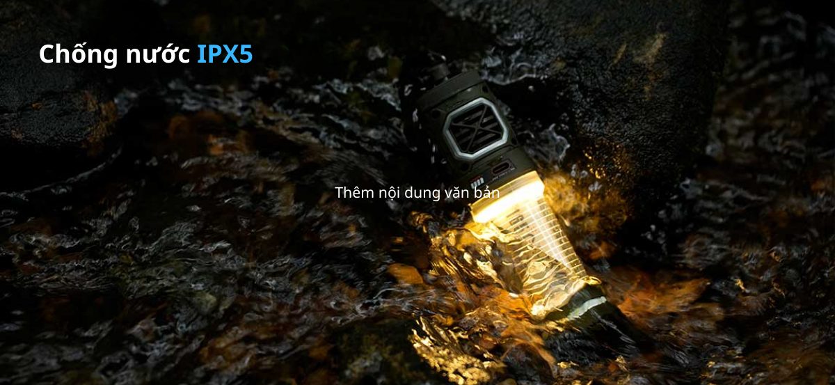 Trang bị chuẩn chống nước IPX5, cho phép sử dụng an toàn trong điều kiện ẩm ướt hoặc mưa nhẹ, mang lại độ tin cậy cao hơn cho các hoạt động ngoài trời.