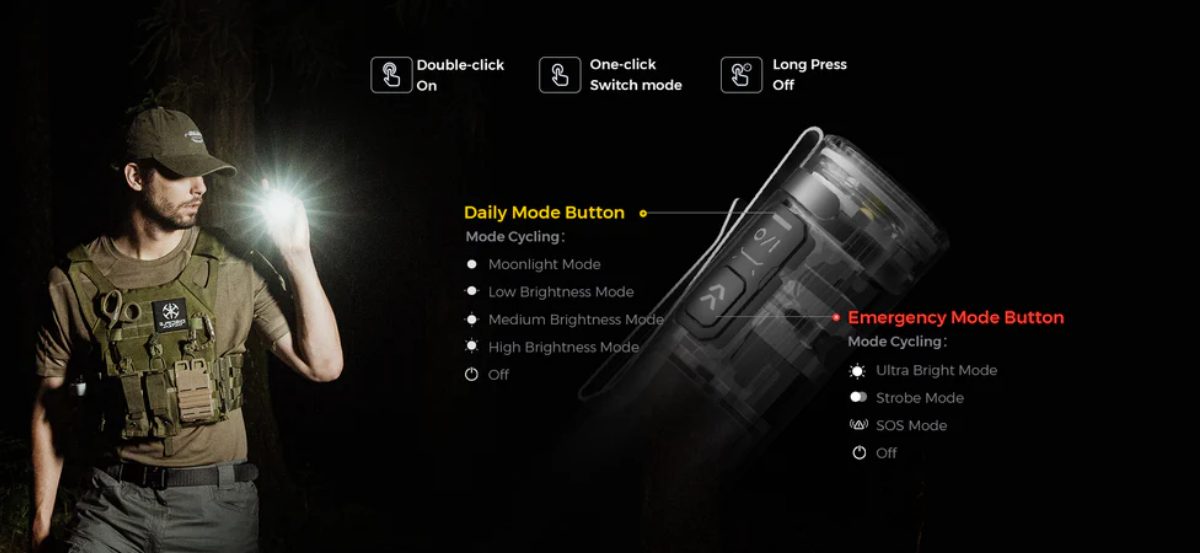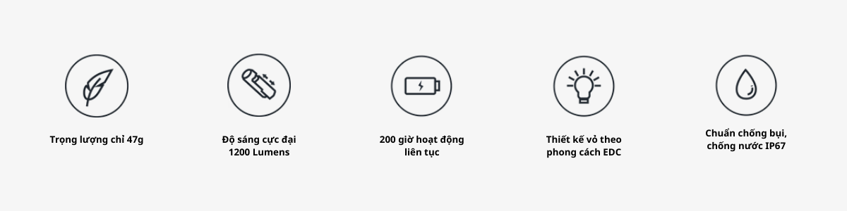 Tất cả hiệu năng ấn tượng này được gói gọn trong một thân đèn siêu nhỏ gọn, lý tưởng cho EDC (mang theo hằng ngày) và mang lại sự tự tin để xử lý mọi tình huống một cách dễ dàng.