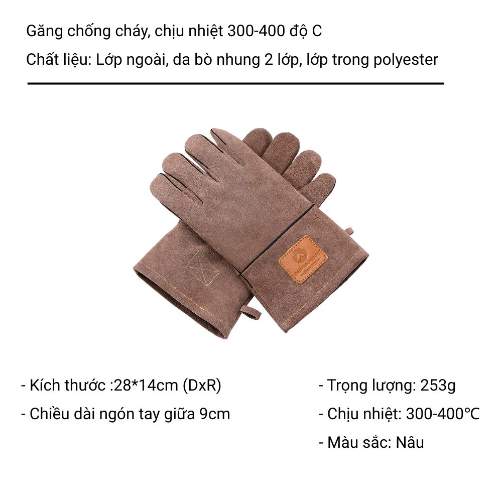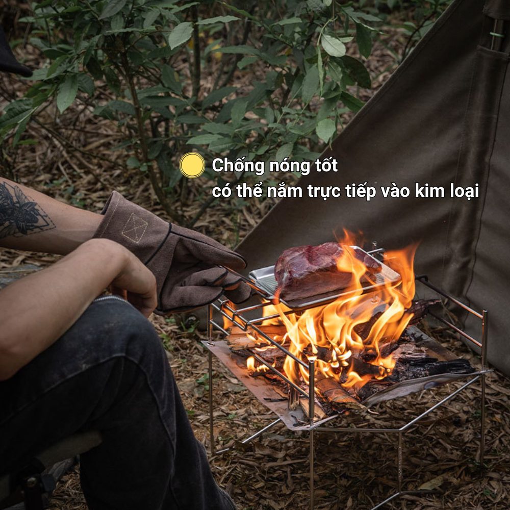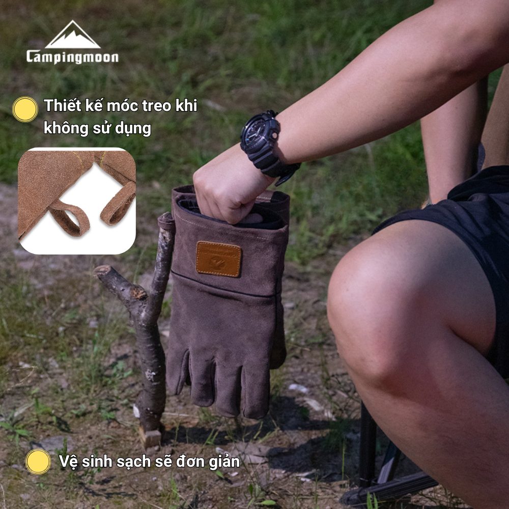 Găng tay chịu nhiệt Campingmoon Q28 là phụ kiện bảo hộ không thể thiếu cho các hoạt động nướng BBQ, nấu ăn ngoài trời, nhóm lửa hoặc thao tác với dụng cụ nóng khi cắm trại. Thiết kế chắc chắn với da bò nhung 2 lớp dày dặn giúp chống cháy, chịu nhiệt cao và bảo vệ đôi tay tối đa trong quá trình sử dụng.