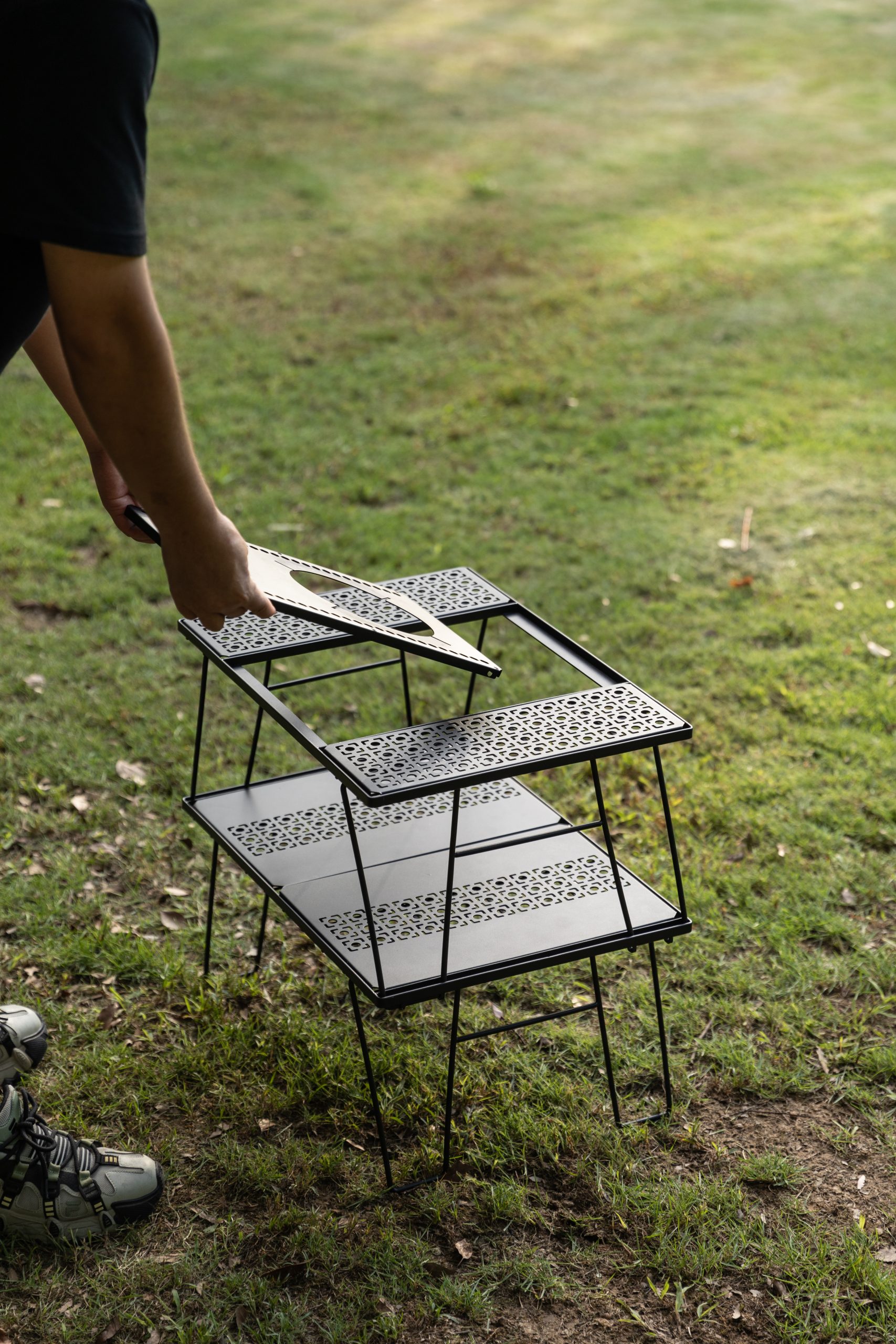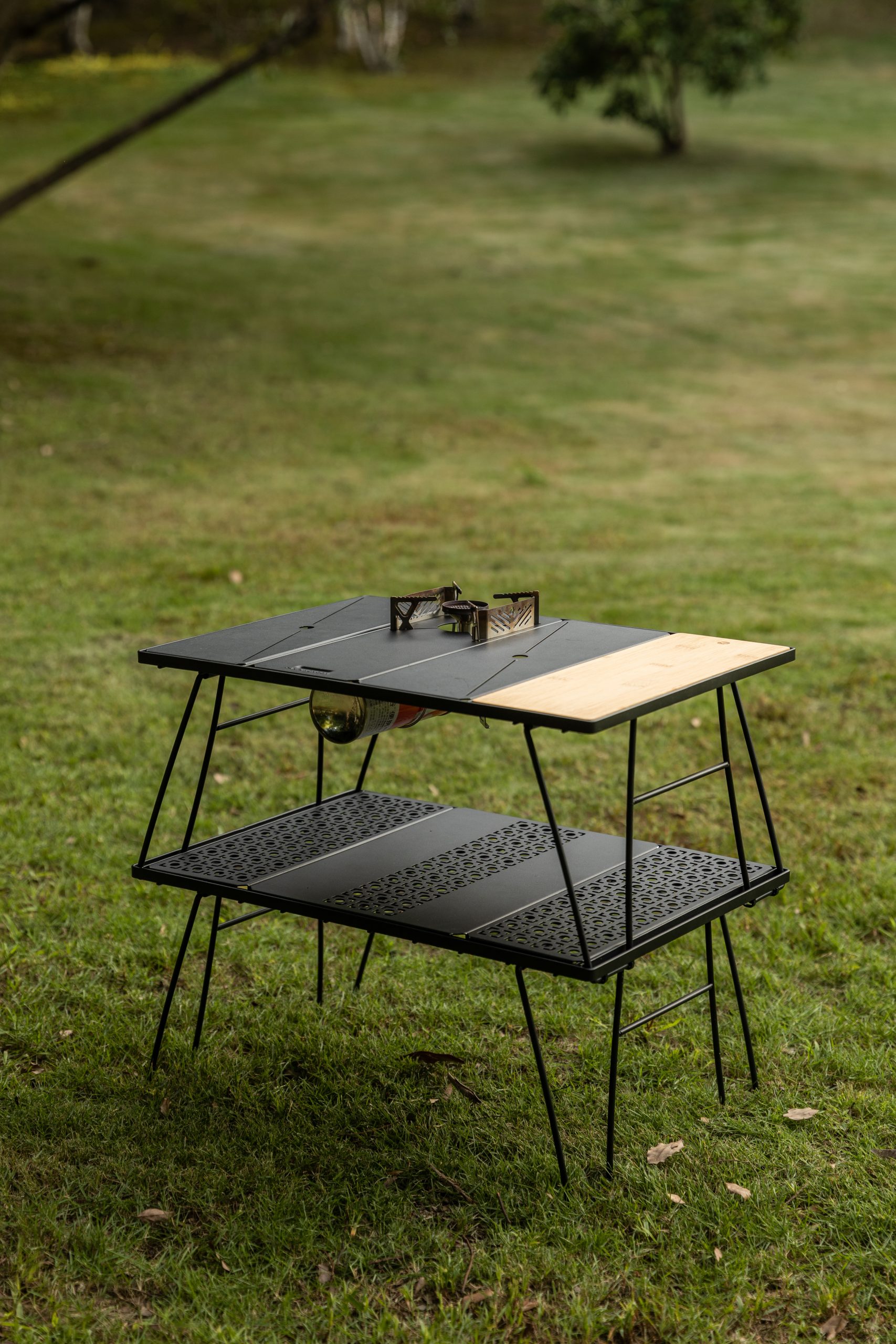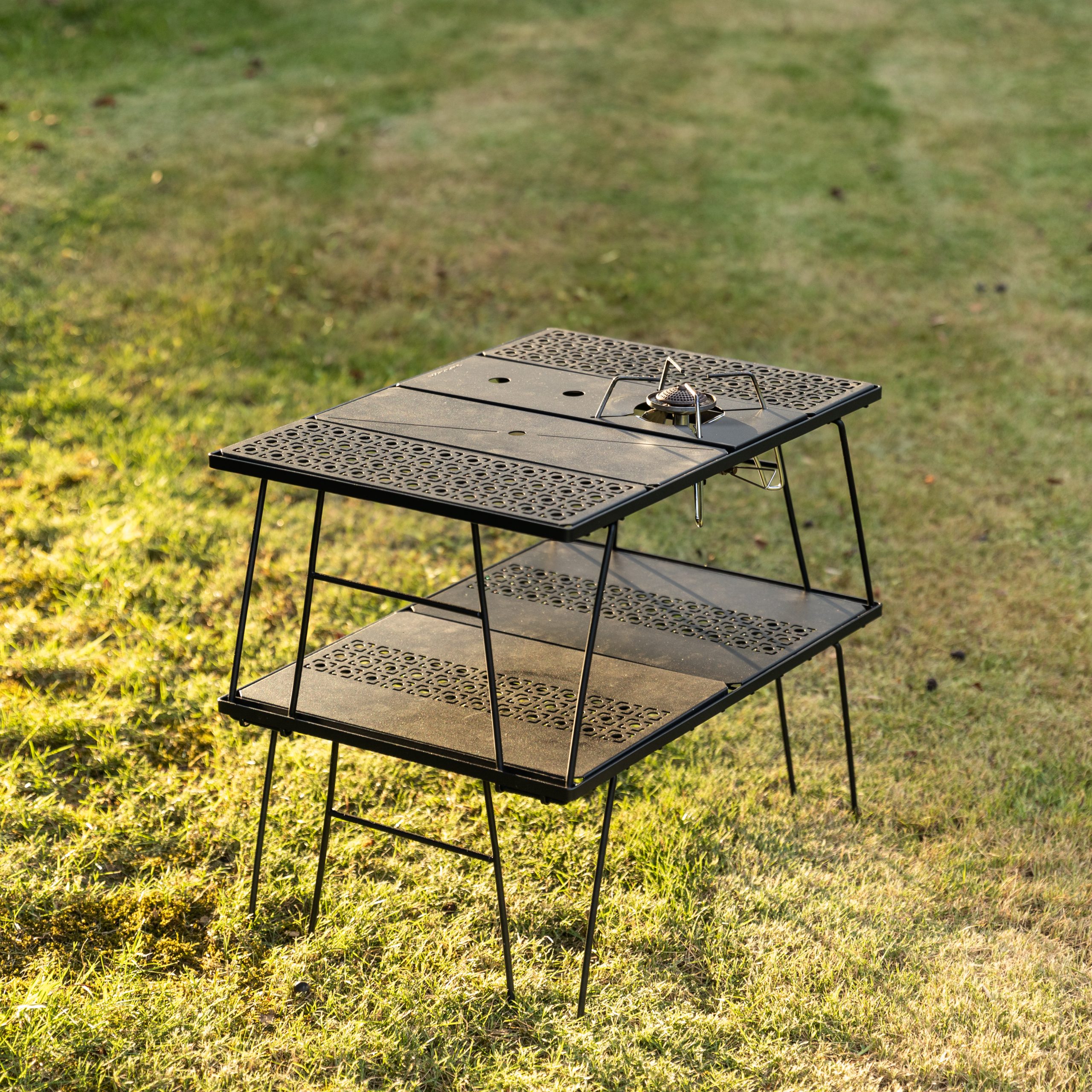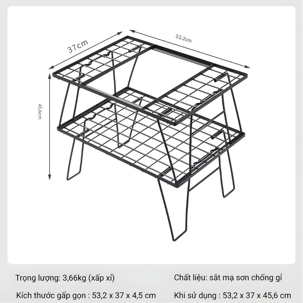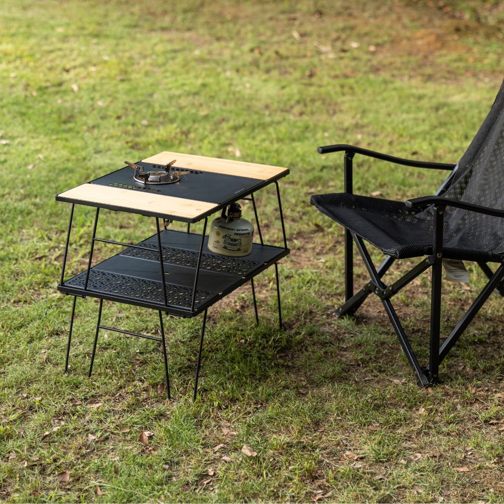 BÀN GẤP CAMPING 2 TẦNG – TÍCH HỢP MẶT TRỐNG 1 UNIT IGT – GỌN NHẸ, LINH HOẠT CHO MỌI CHUYẾN ĐI