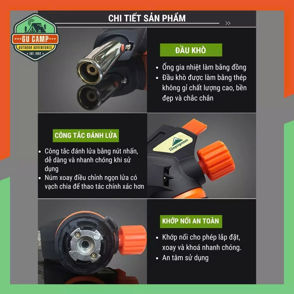 Dễ dàng kết nối với bình khí butan loại vòi phun, phổ biến trên thị trường.
