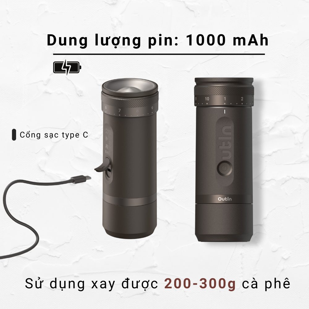 🏕️ CỐI XAY CÀ PHÊ ĐIỆN OUTIN FINO PORTABLE ELECTRIC COFFEE GRINDER – CHÍNH HÃNG OUTIN