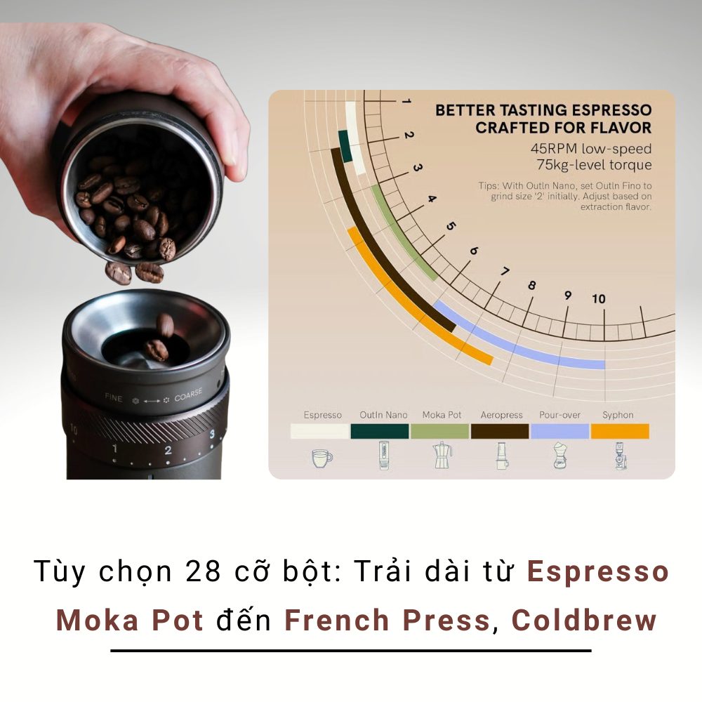 Trải nghiệm xay cà phê chuẩn barista mọi lúc, mọi nơi – từ Espresso, Moka đến Pour-over hay French Press.